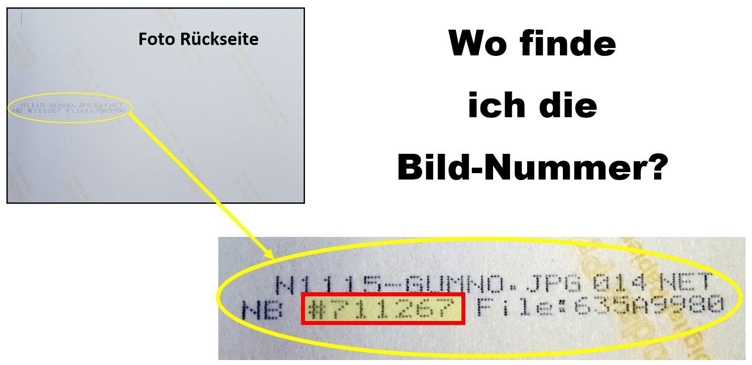 Die Bild-Nummer finden Sie ganz einfach auf der Rückseite Ihres Fotos.